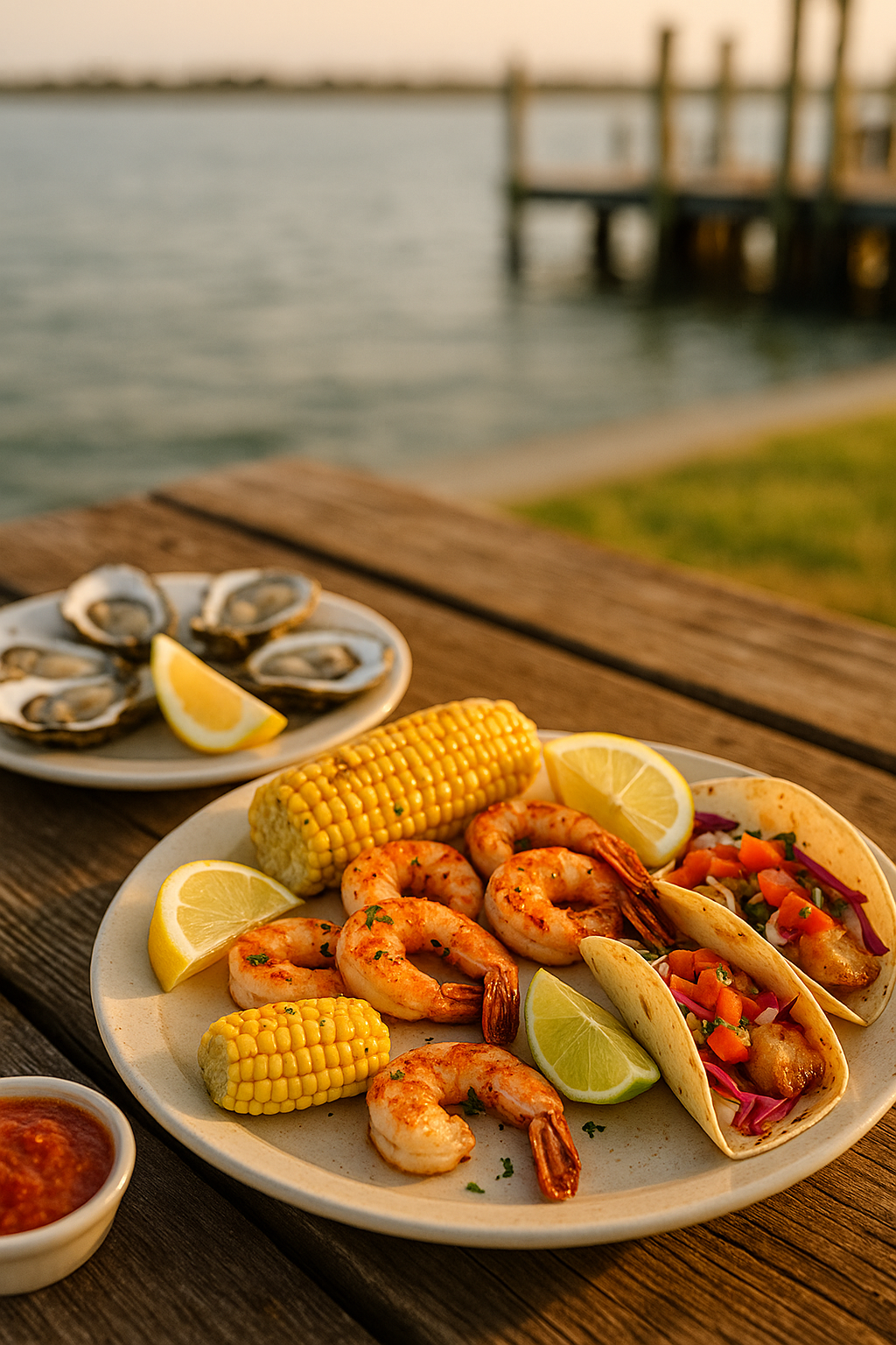 Seafood with a view. A longtime local favorite near the river, known for fresh shrimp, fried seafood plates, and a casual vibe.
